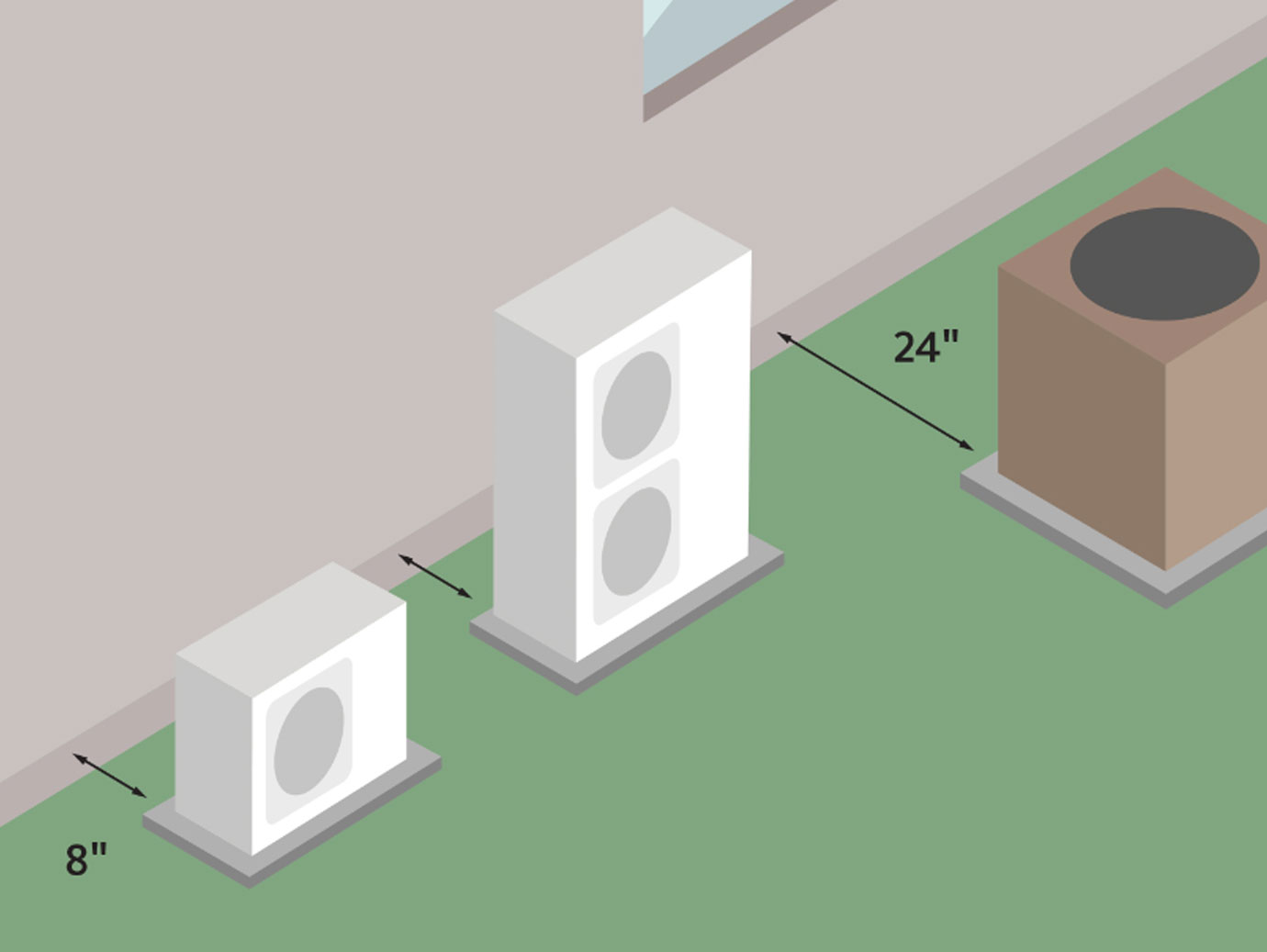 The side-discharge design of the Coleman® HMH7 is more efficient than traditional top-discharge designs in both size and operation. Snow and organic debris won’t hamper operation, and the sleek design results in 36% quieter operating volume and a 40% smaller footprint compared to standard heat pump units. With a setback distance of only eight inches, the HMH7 is perfect for high-density areas, unlike traditional horizontal-discharge units, which often require at least 24 inches.